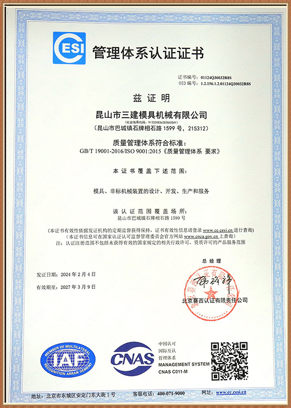 昆山市三建模具機(jī)械有限公司 創(chuàng)建于1996年,是一家研發(fā)生產(chǎn)電冰箱模具(電冰箱門、箱真空成型吸塑模、沖孔切邊模、 發(fā)泡內(nèi)外夾具、沖壓模具)產(chǎn)品并提供成套專業(yè)化控制解決方案的企業(yè)。 公司位于昆山市經(jīng)濟(jì)技術(shù)開發(fā)區(qū)石牌工業(yè)配套區(qū),交通便利。公司占地面積3.3萬平方米,建筑面積1.2萬余平方米,固定資產(chǎn)達(dá)5000萬元。 公司已通過ISO 9001:2008認(rèn)證。 公司現(xiàn)有員工120人,各類專業(yè)技術(shù)人員35人。擁有蘇州市級(jí)企業(yè)技術(shù)中心和省級(jí)工程技術(shù)研究中心,擁有優(yōu)良的專業(yè)化研發(fā)團(tuán)隊(duì)和自主知識(shí)產(chǎn)權(quán)。 公 司擁有完善的銷售網(wǎng)絡(luò),產(chǎn)品80%以上出口,銷往全球10多個(gè)國(guó)家和地區(qū)。主要客戶品牌如三星、松下、日立、東芝、夏普、三菱、三洋、星崎、LG、伊萊克斯、惠而浦等。 公司旗下?lián)碛刑K州...